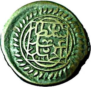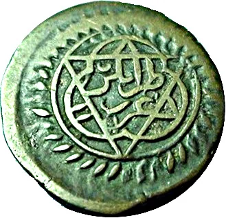 Mint and date within a geometric ornament of a circle, triangle, and three arches.