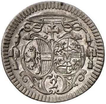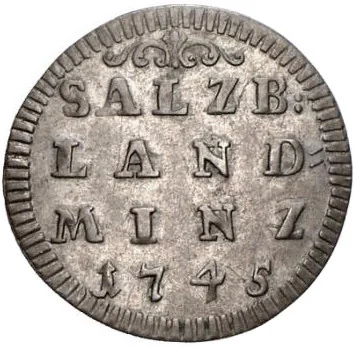 Archbishop's hat above two decorated shields: Salzburg on left, bishop's personal arms on right. Value in frame below.