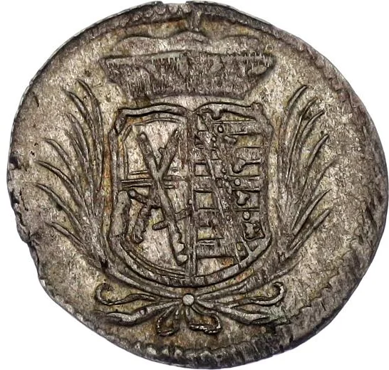 Saxon arms with electoral hat between palms, initials and mint mark below.