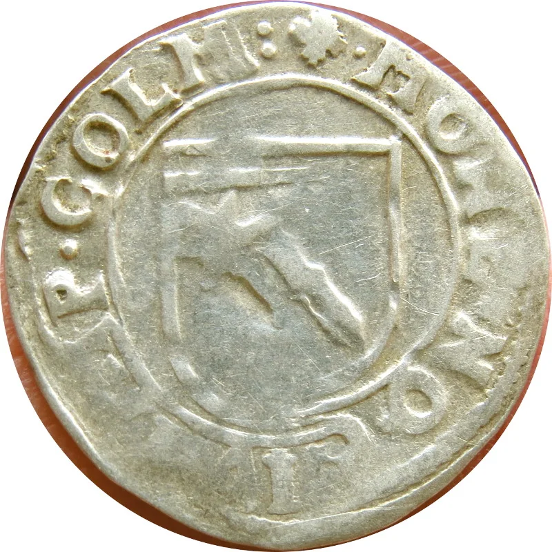 Coat of arms of Colmar within a shield, encircled by a legend beginning at 1 o'clock.