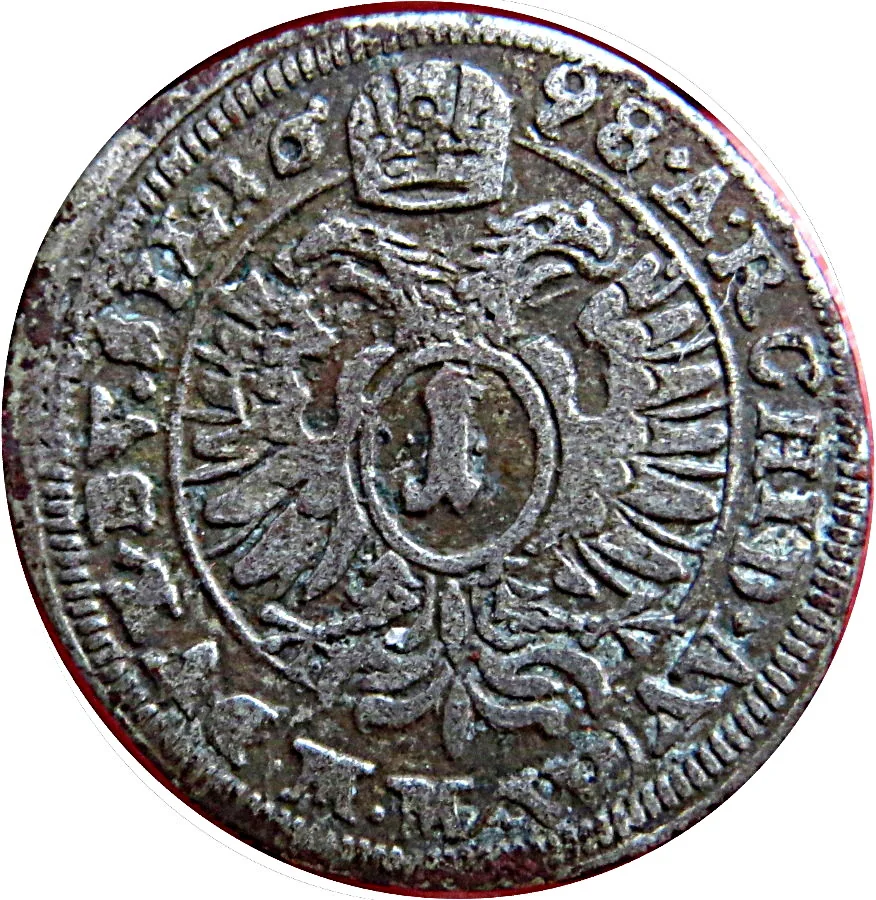 Description: Crowned double eagle with value on breast. Crown divides date above. Legend: "Archidux Austriae Dux Burgundiae Silesiae" (from 1h). Mint mark divides legend below.