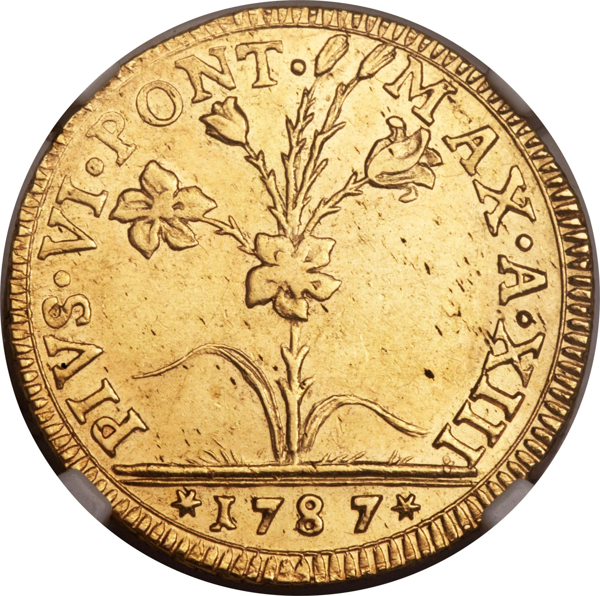 In 1787, Bologna operated within the complex monetary landscape of the Papal States, under the temporal rule of Pope Pius VI. The city did not issue its own independent currency but used a system dominated by the Papal scudo (divided into 100 baiochi, each of 10 quattrini), which was the official standard. However, Bologna's historic economic importance and its position as a major hub meant that a plethora of other coins also circulated freely. These included silver coins from neighbouring Italian states like the Tuscan fiorino and Venetian lira, as well as gold zecchini and Spanish silver reales, reflecting its active role in regional trade.