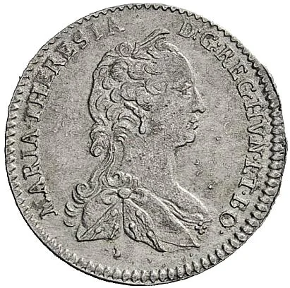 Bust of Maria Theresia facing right, with a surrounding legend.