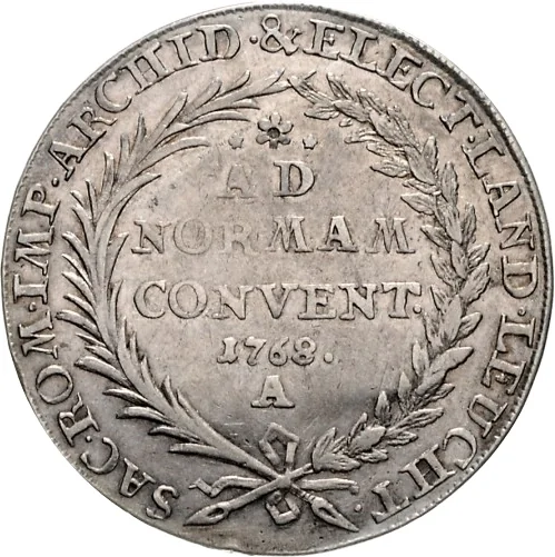 Rampant lion facing right, holding a sword and a shield displaying the quartered arms of Bavaria and Pfalz with a central imperial orb; two order chains hang below.