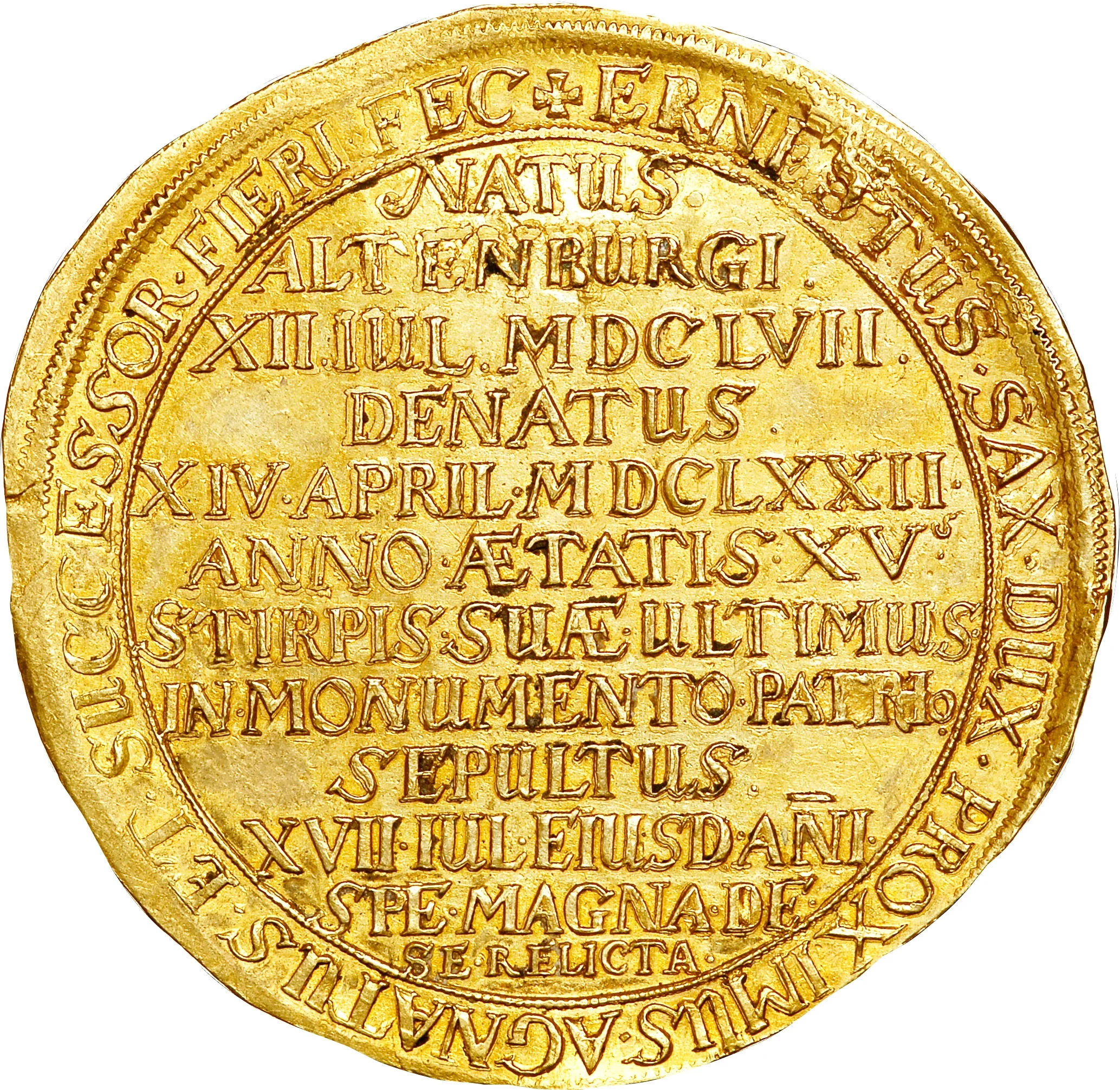 Inscription: +ERNESTUS. SAX. DUX. PROIMUS. AGNATUS. ET. SUCCESSOR. FIERI. FEC.