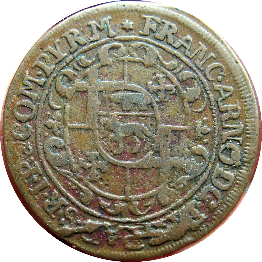 Description: Arms of Paderborn and Pyrmont with central Wolff-Metternich shield. Beaded circle, legend: "Franciscus Arnoldus...Episcopus Paderborn...Princeps Comes Pyrmont".