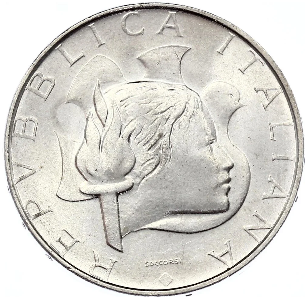 Italy personified as a woman facing right, with an Olympic torch above and a dove encircling the scene, symbolizing peace. Below are the engraver's name and a quadrilateral.
