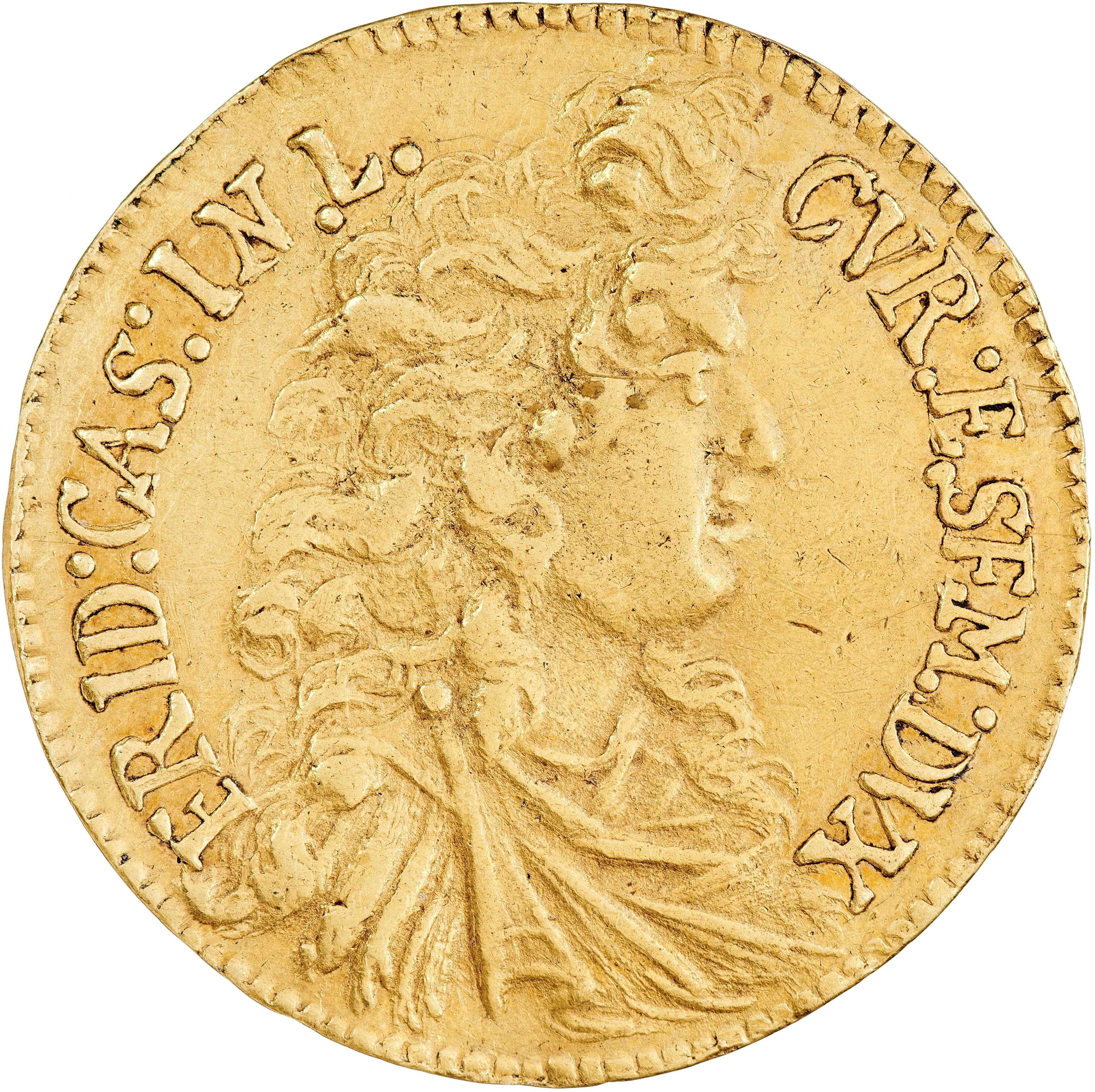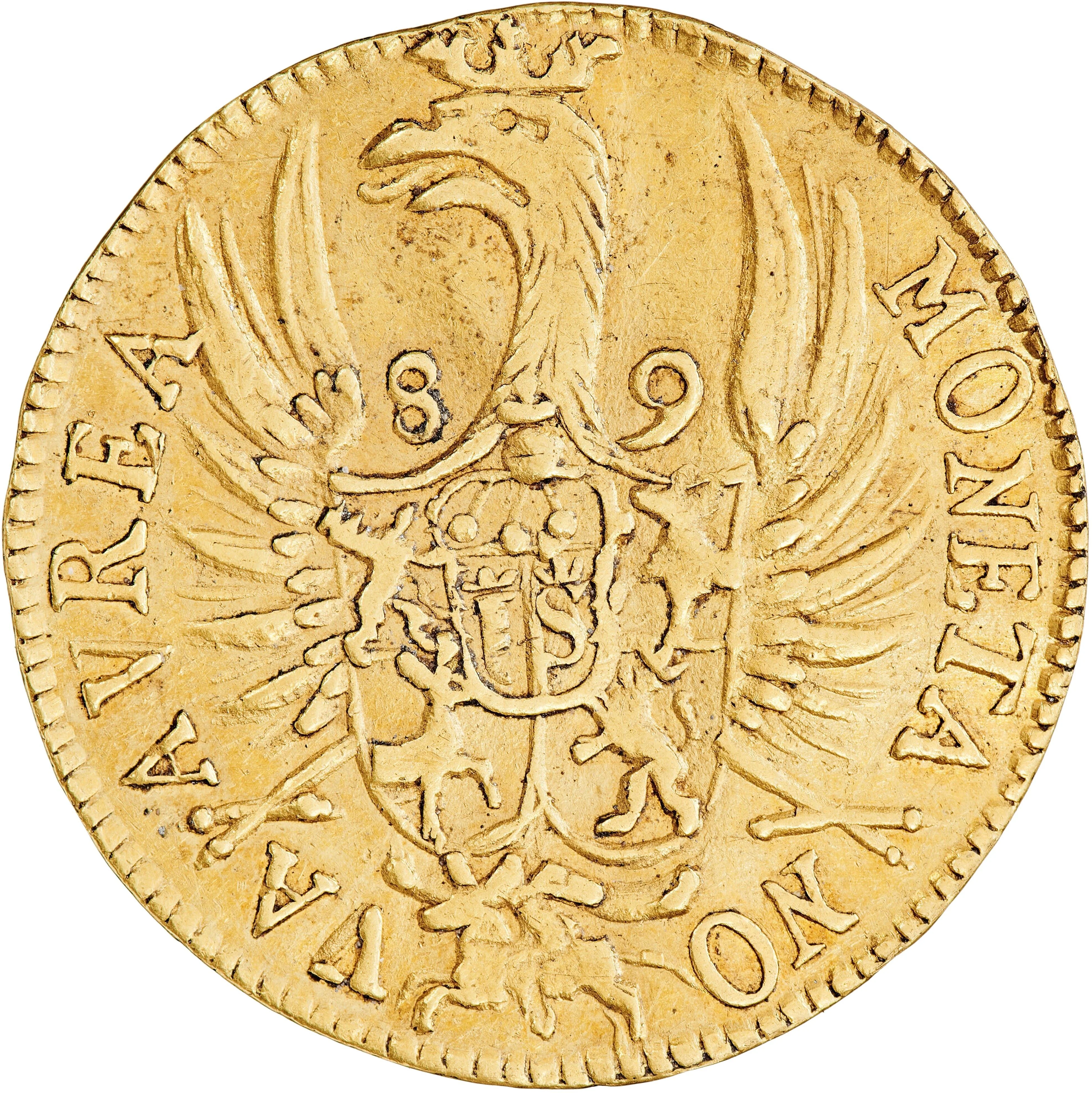 Crowned eagle with quartered shield between date and surrounding inscription.