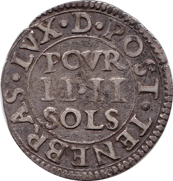 Arms in shield, sun above, date below.