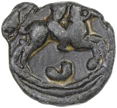Galloping horseman with raised sword, crescent below.