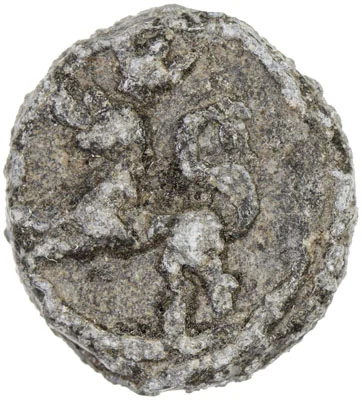 Crowned Norse lion left on a curved axe, no letter.