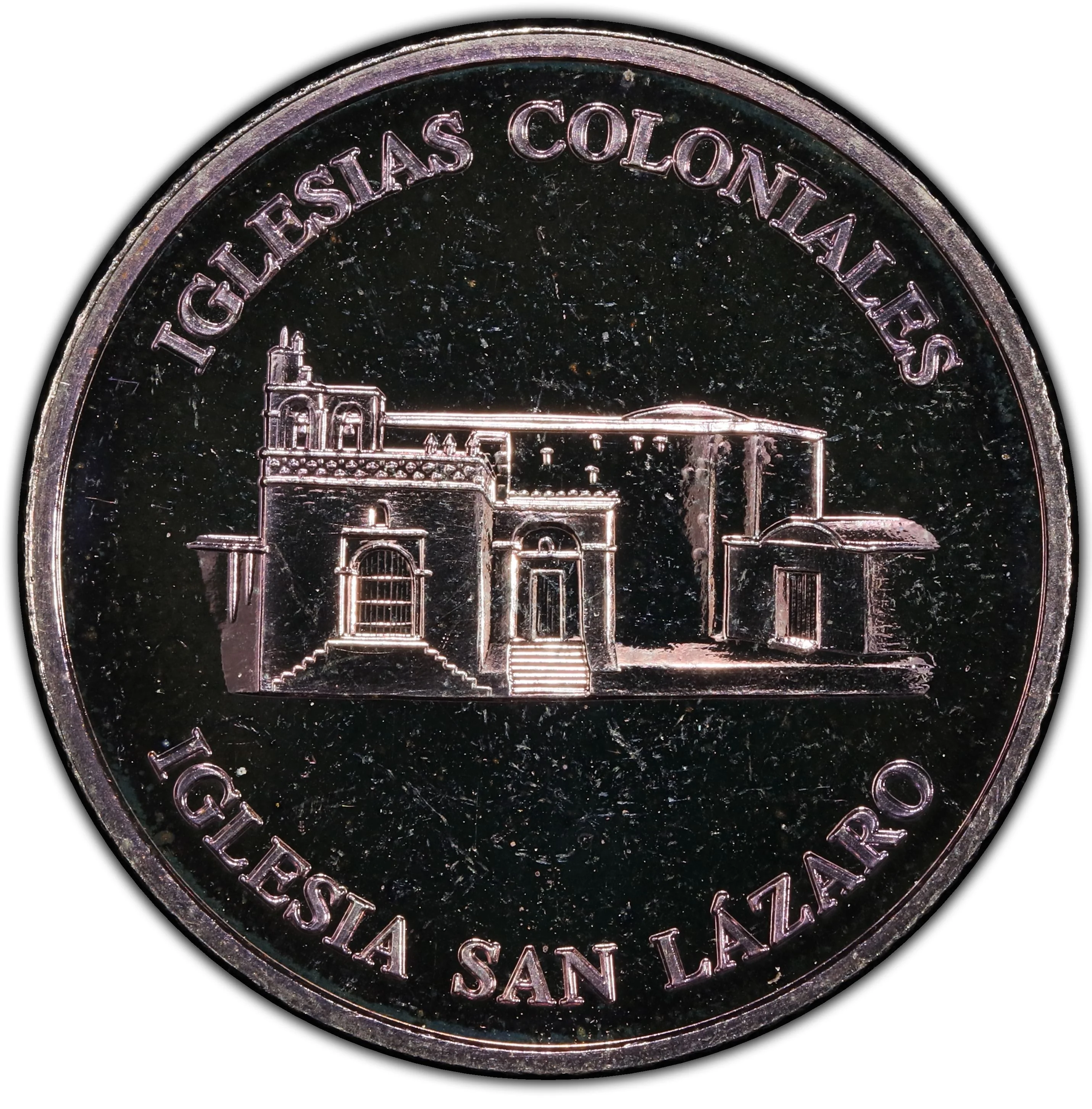 Issuer above coat of arms. Weight, year, value, and fineness below.