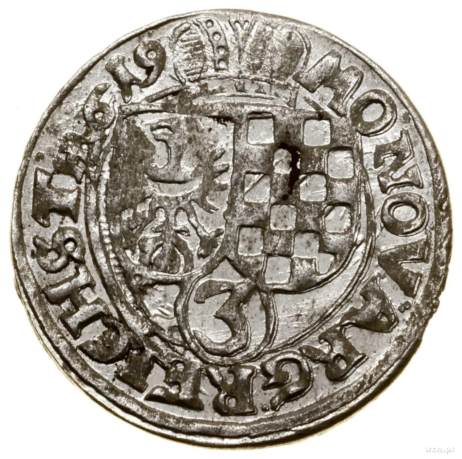 Two shields: Silesian eagle and Brieg. Crown above, "3" in oval, dated legend.