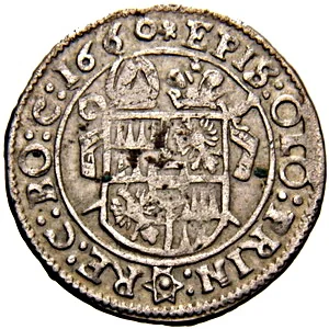 Arms beneath crown and mitre.