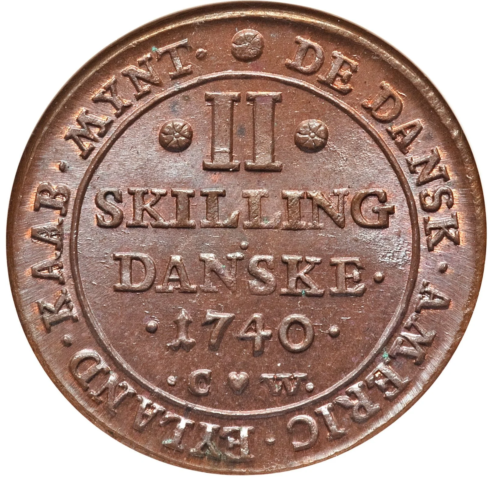 In 1740, the currency situation in the Danish West Indies (present-day U.S. Virgin Islands) was characterized by chronic scarcity and chaotic multiplicity. The official currency was the Danish