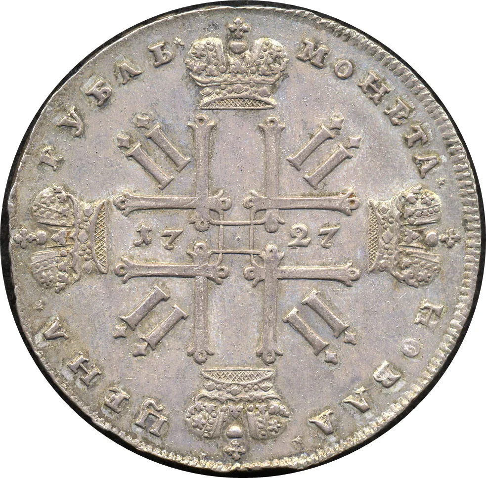 In 1727, the currency situation in the Russian Empire was one of profound crisis and transition, stemming directly from the monetary reforms of Peter the Great, who had died just two years prior. Peter had sought to modernize Russia’s primitive monetary system by introducing a decimal-based coinage of copper kopeks and silver rubles, and by massively debasing the silver coinage to fund the Great Northern War. This resulted in a severe imbalance: the face value of the new copper coins was vastly higher than their intrinsic metal worth, while the underweight silver coins drove full-weight pre-Petrine silver out of circulation (Gresham’s Law in action). By 1727, the empire was left with a chaotic, two-tiered currency system of trusted old "wire money" and distrusted new coins, causing inflation and hampering trade.