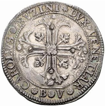 Large foliated cross with central rose, leaf in each angle, all within circle; mintmaster's initials in exergue.