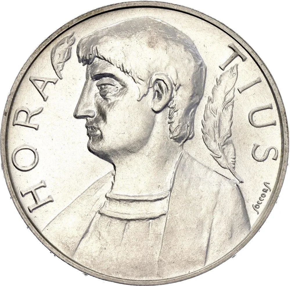 A Corinthian capital with an incused "Ars Poetica" verse and value. Mint mark and date at left.