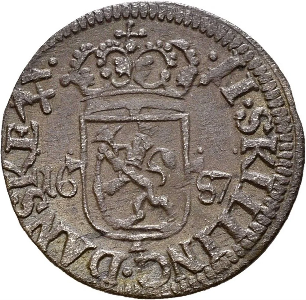 In 1687, Norway was part of the dual monarchy of Denmark-Norway, and its currency system was complex and problematic. The primary circulating coin was the skilling, minted in silver, but the system was officially based on the riksdaler specie, a large silver coin. However, a severe shortage of official coinage plagued the economy, leading to widespread use of fragmented and worn foreign coins, particularly German and Dutch, which circulated at negotiated values. This created a chaotic and inefficient monetary environment where trade often relied on barter, especially in rural areas.