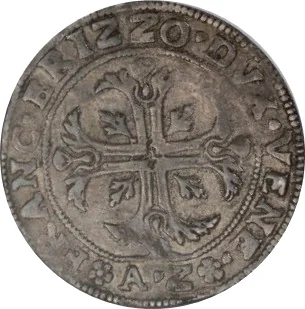 Large foliated cross with central rose, leaf in each angle, all within circle; mintmaster's initials in exergue.