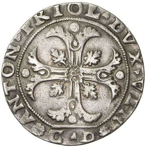 Large foliated cross with central rose, leaf in each angle, all within circle; mintmaster's initials in exergue.