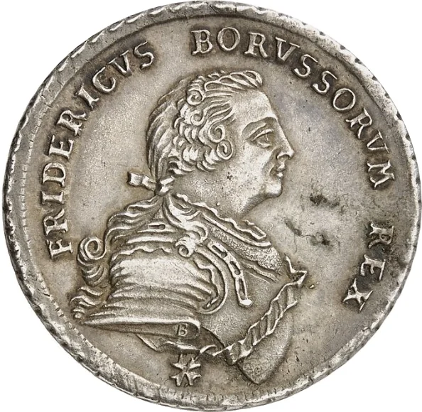 Armored bust of Friedrich II right, legend above.