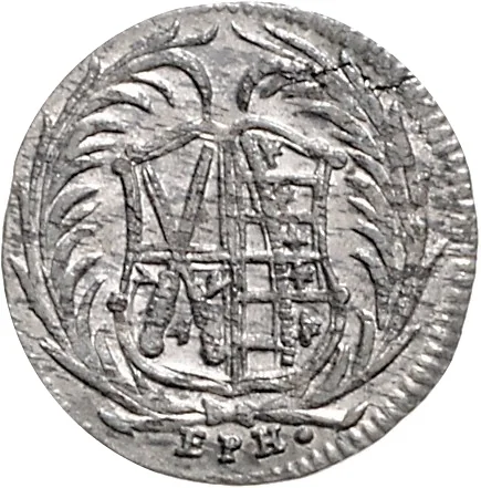Saxon coat of arms framed by crossed palm branches, mint mark beneath.