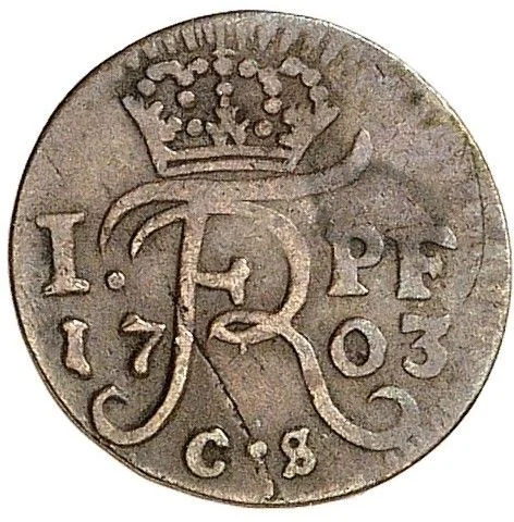 Crowned monogram between date and value. Mintmaster initials beneath.