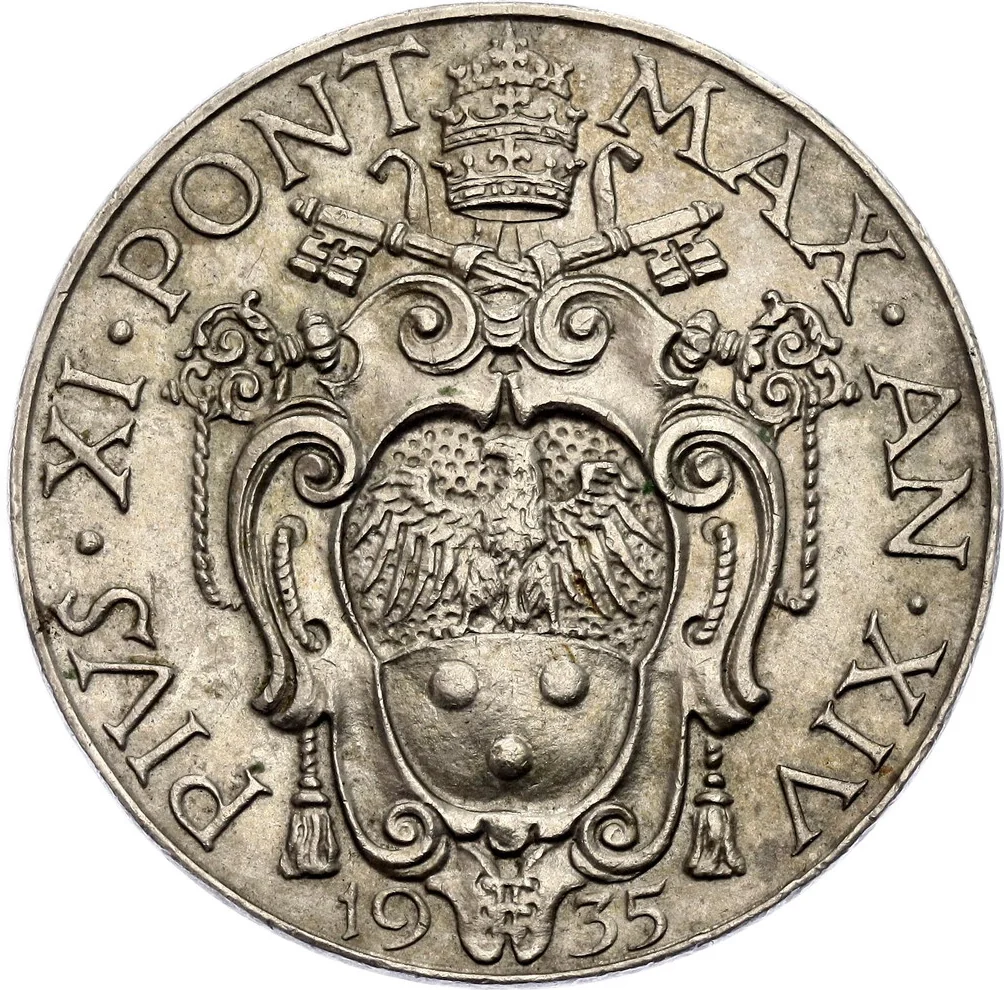 Pius XI coat of arms (tiara above crossed keys and cross), date below.