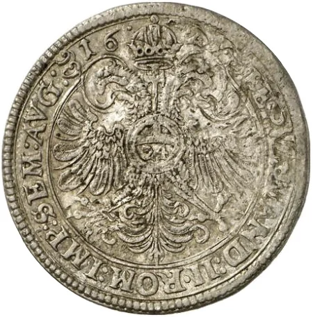 Imperial eagle with crown, orb on breast, titles of Ferdinand II, date divided above.