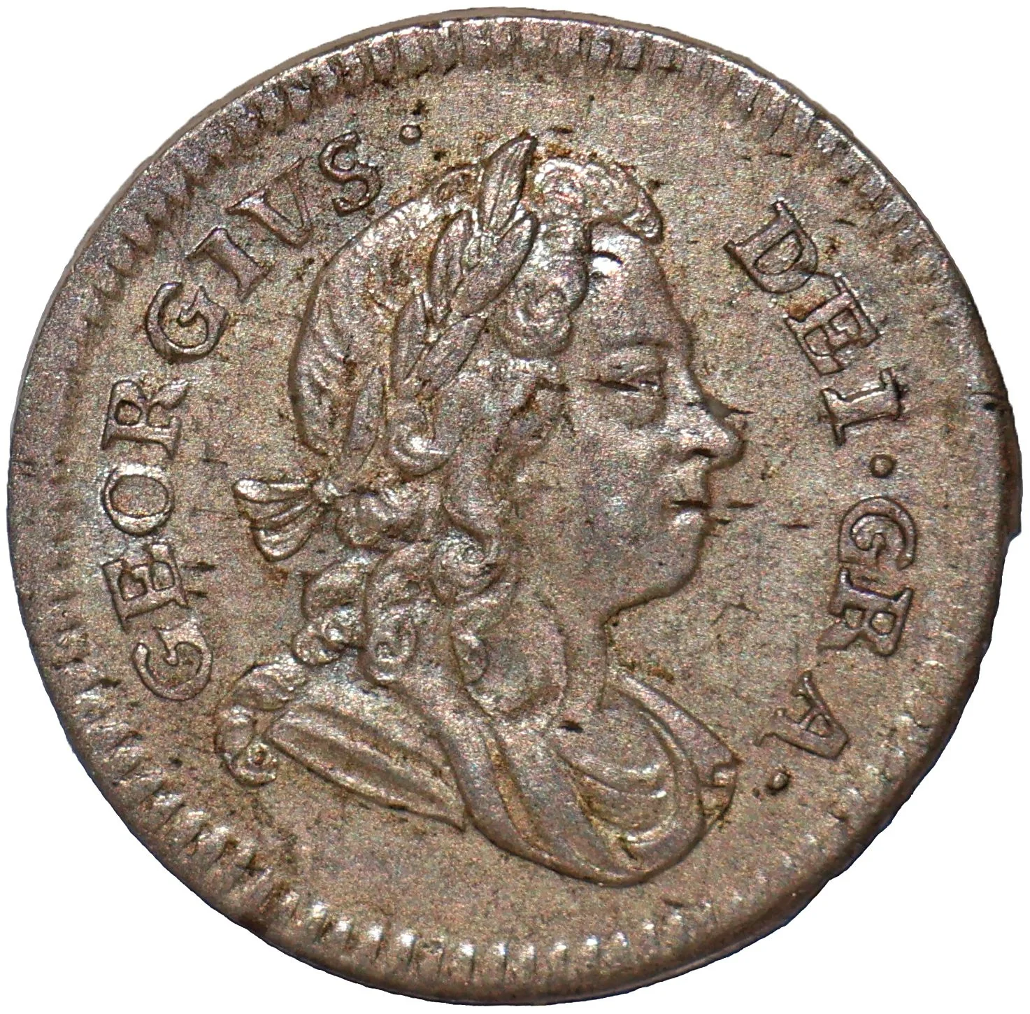King George I laureate, draped bust right, surrounded by legend.