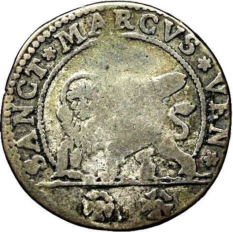 Lion of St. Mark striding left, facing forward, two roses in exergue.