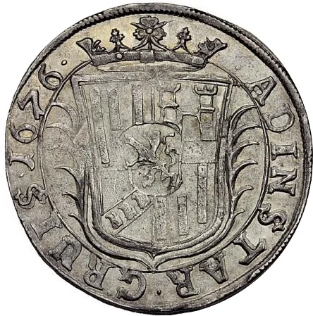 Shield with four quarterings, central Sayn shield between palm branches; dated legend.