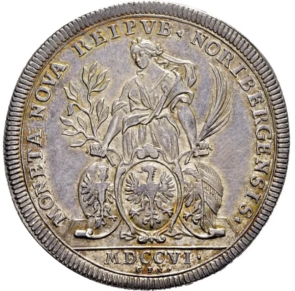 MONETA NOVA REIPVB • NORIBERGENSIS •, in exergue; MDCCVI•/GFN•