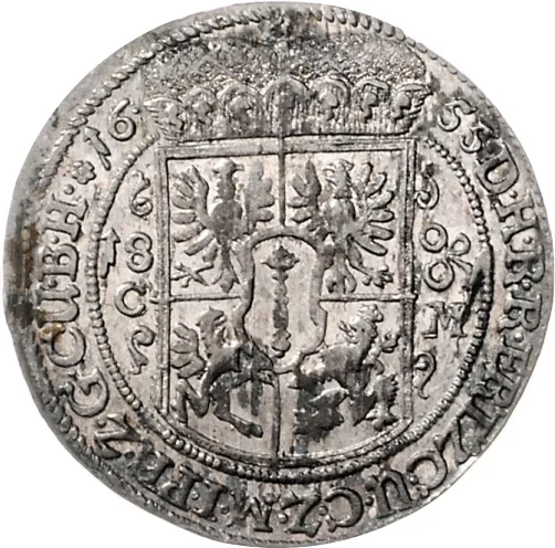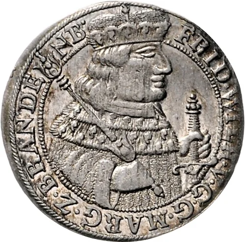 Half-length figure in electoral hat, holding scepter and sword, facing right.