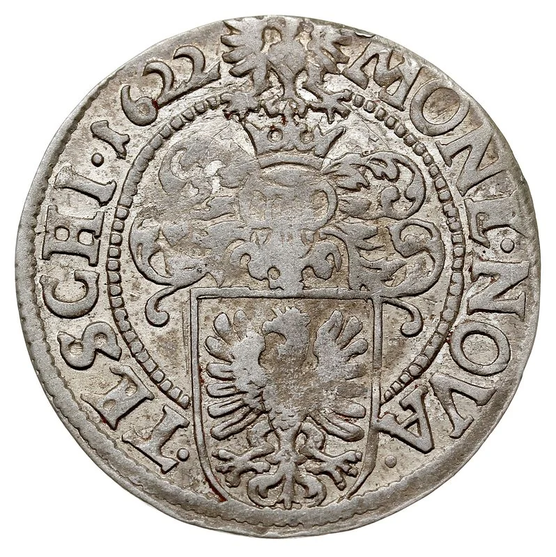 Small shield with Silesian eagle below, ornate helmet topped with a crowned Silesian eagle, date follows legend.