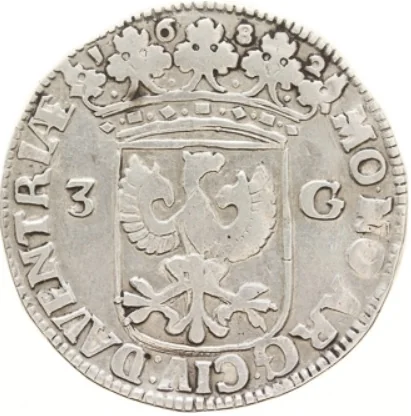 Arms of Deventer divide value, date above crown.
