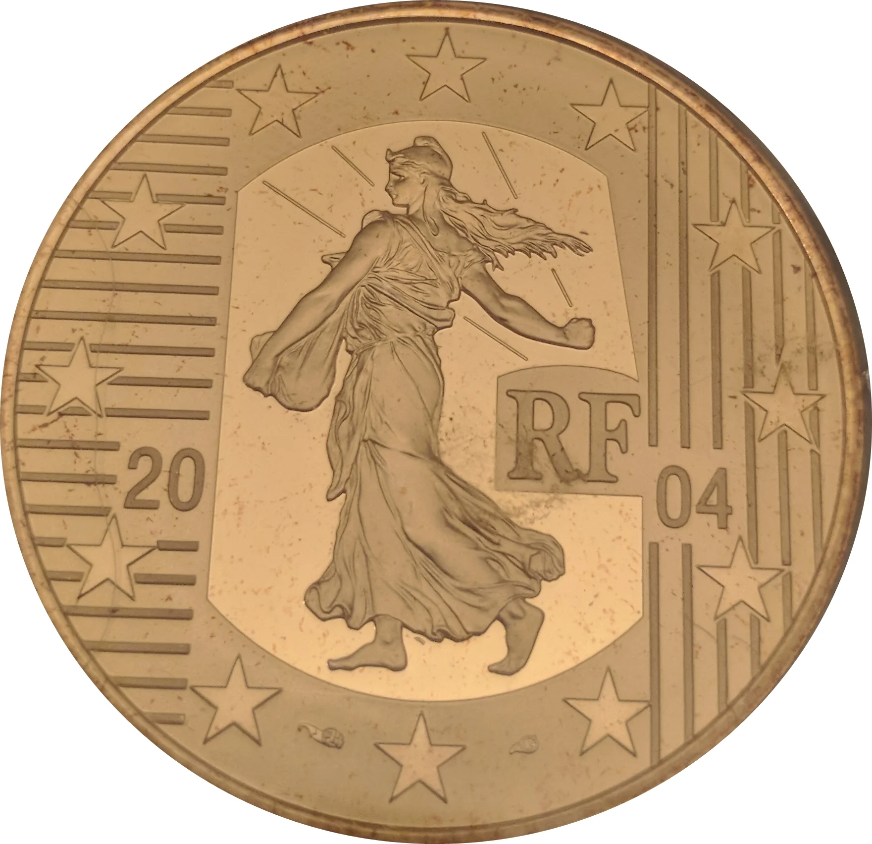 Sower after Roty, encircled by stars on a scroll reminiscent of the European flag.