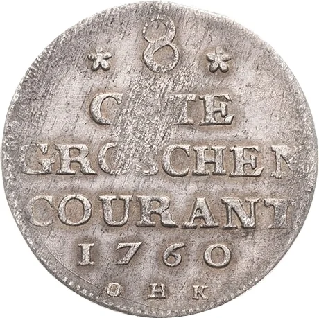 reichsthaler was dominant in trade, while various local German states' coins also circulated, creating a chaotic monetary environment exacerbated by the ongoing Seven Years' War (1756-1763).