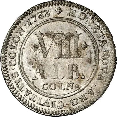 MONETA NOVA . ARG.CIVITATIS.COLON.1733.