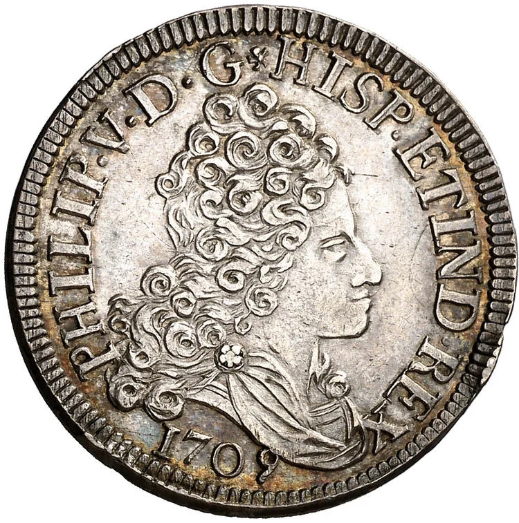 In 1709, Spain was embroiled in the War of the Spanish Succession (1701-1714), a devastating European-wide conflict over the throne of the Spanish Habsburgs. This war was the primary driver of a profound monetary and economic crisis. The royal treasury, under the claimant King Philip V, was exhausted from financing armies and subsidies to allies. To meet these colossal expenses, the government resorted to desperate fiscal measures, including repeated debasements of the coinage. The silver content of coins was systematically reduced, and vast quantities of low-quality copper vellón currency were minted, leading to severe inflation and a loss of public confidence in the currency's value.