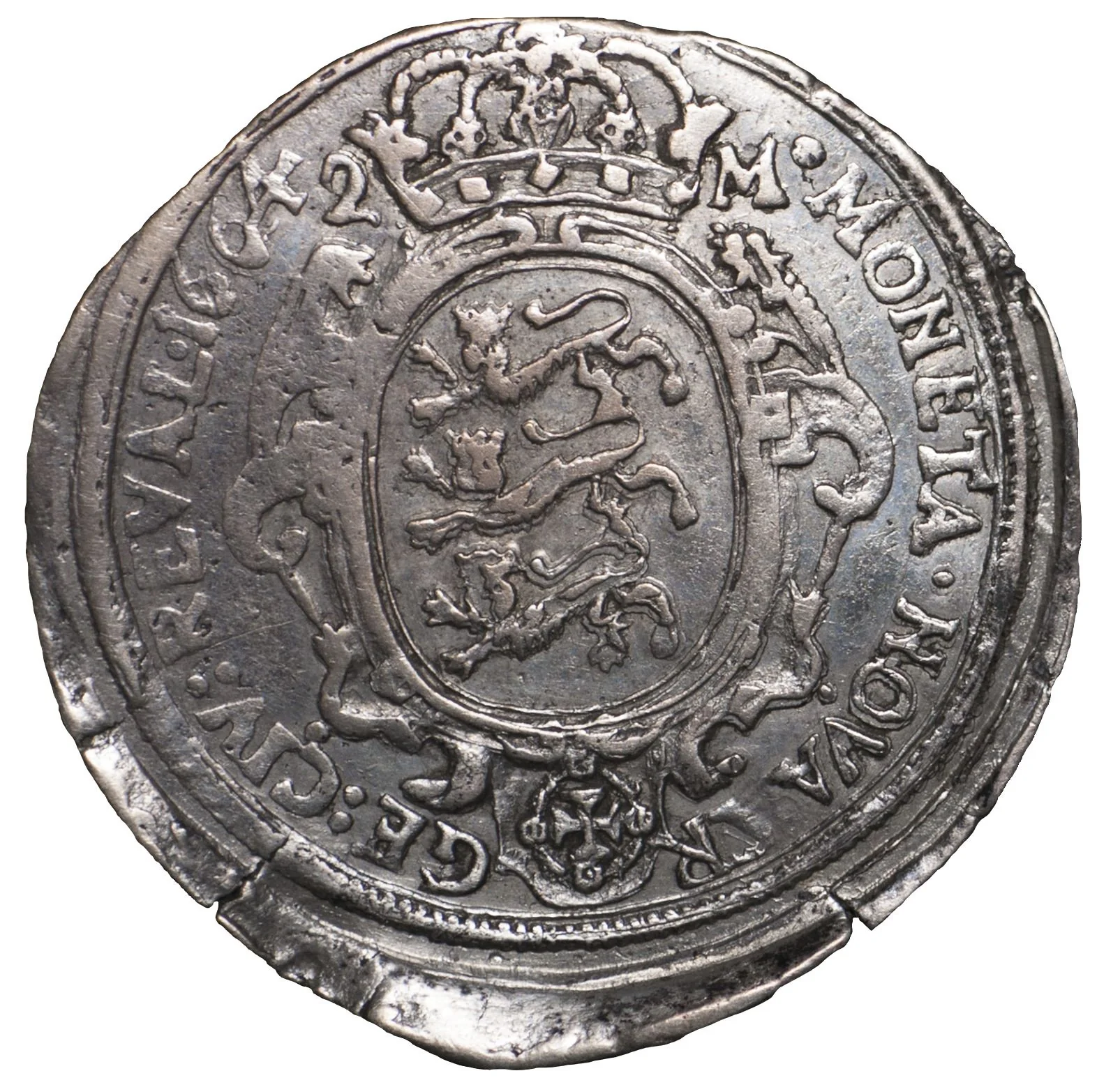 MONETA · NOVA · AR GE : CIV : REVAL · 1664