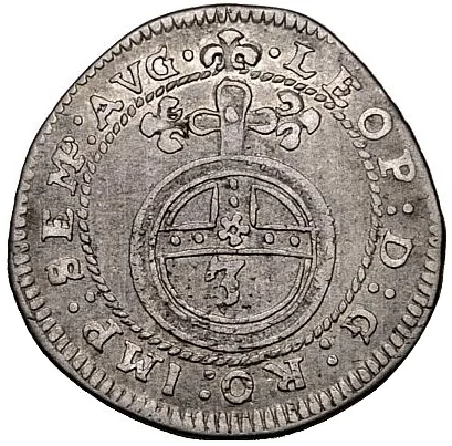 Inner circle: Imperial orb with "3." Outer circle: Titles of Leopold I.