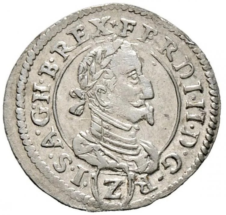 Ferdinand II portrait facing right within a circle. Value in frame below.