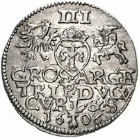 Eagle and horseman flank crowned Vasa arms, above legend, below value.