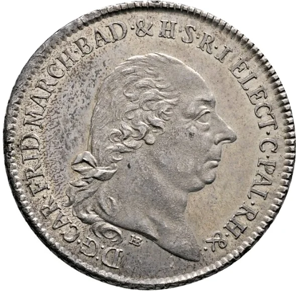 Translation: By the Grace of God, Charles Frederick, Margrave of Baden and Hochberg, Elector of the Holy Roman Empire, Count Palatine of the Rhine, etc.