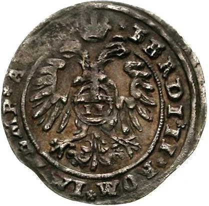 Imperial eagle with crown, orb on breast, titles of Ferdinand II.
