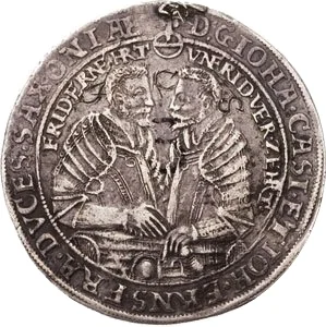 Saxon arms in circle, date above divides C-C, surrounded by 13 small shields.