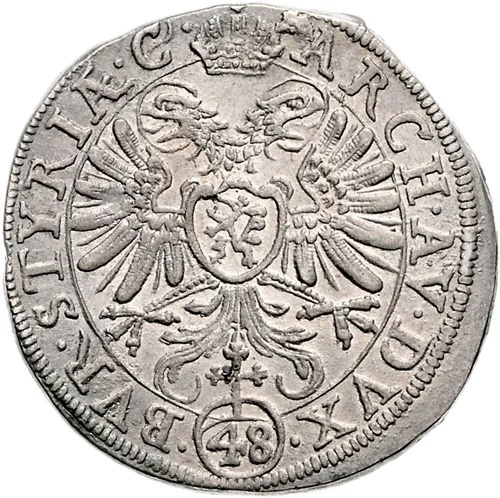 Crowned double-headed eagle with a Styrian panther shield. An orb with the value divides the legend below.
