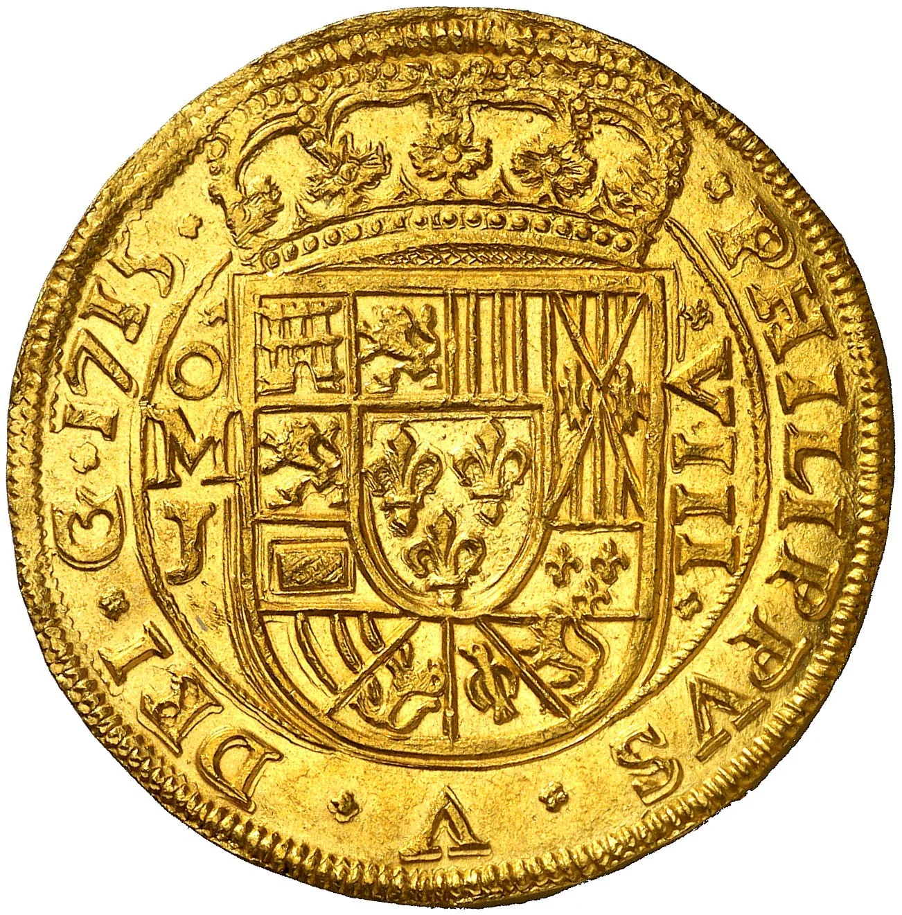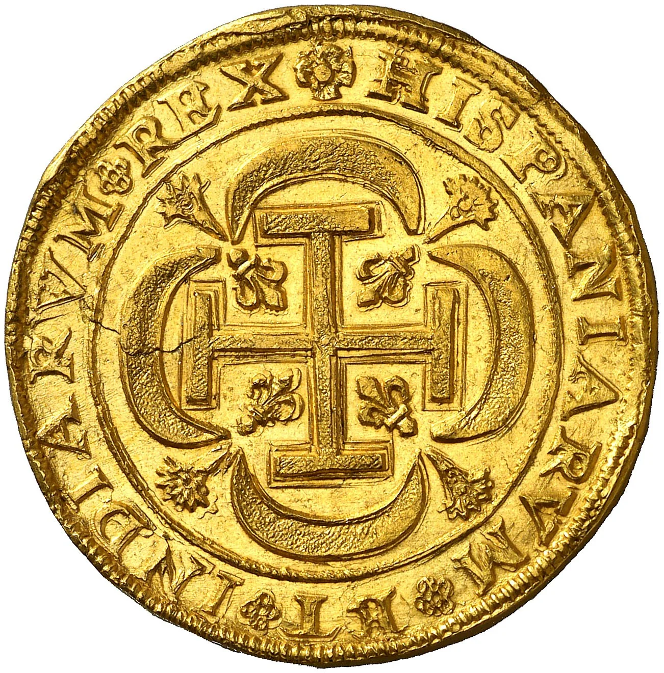 Legend and date flank crowned Spanish arms, which separate mintmark and assayer initial from value.